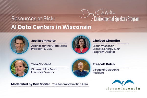 Clean Wisconsin is hosting a panel discussion on data centers in Wisconsin, and The Recombobulation Area's Dan Shafer will moderate the event.