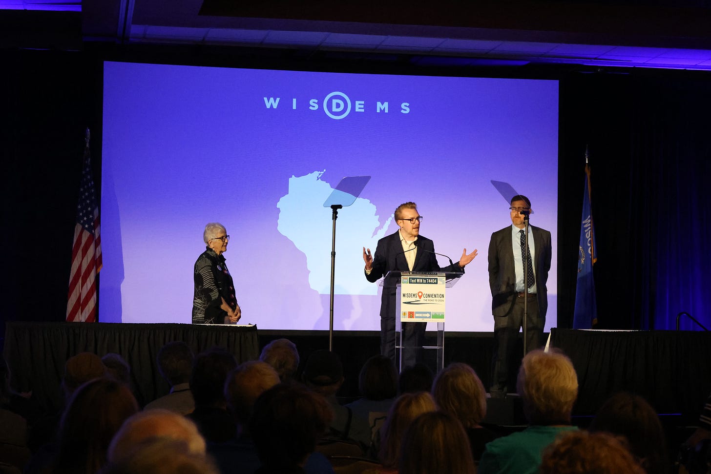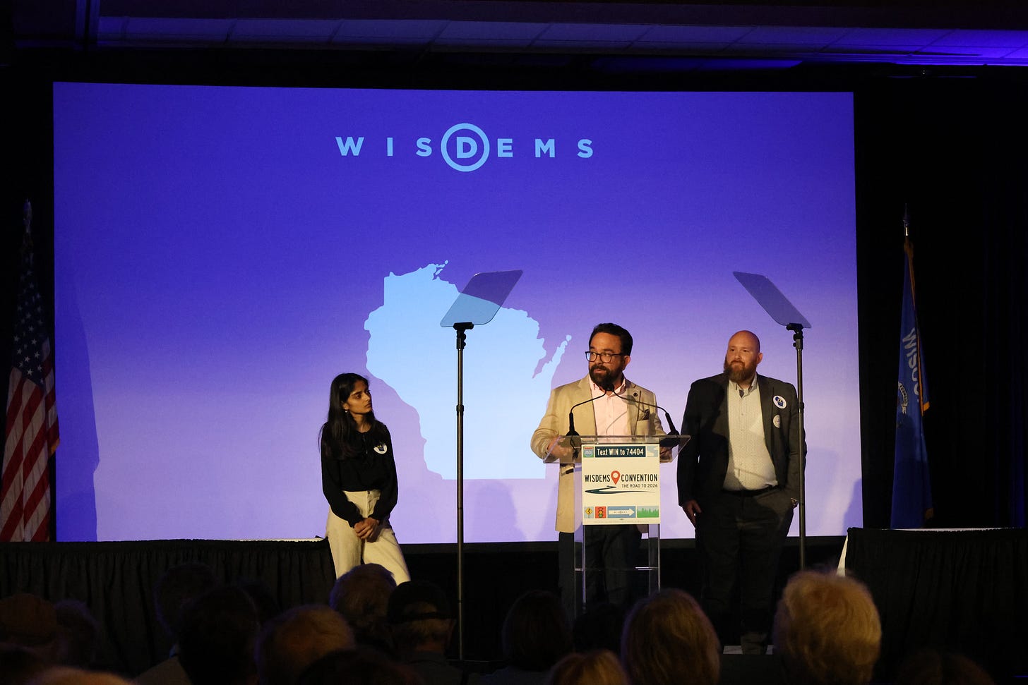So, Wikler’s celebratory weekend was certainly a well-earned one. He took the stage so many times during the two days of the convention, I lost count. He kicked off and closed out each day of the convention, delivered a rousing 17-minute speech of his own, he joined Tammy Baldwin to speak in conversation during her prime-time speaking slot, he was everywhere. His family even joined him on stage on Sunday, in an especially moving moment. Oh, and his endorsed candidate won the race to succeed him as party chair. Quite the weekend for Mr. Wikler.