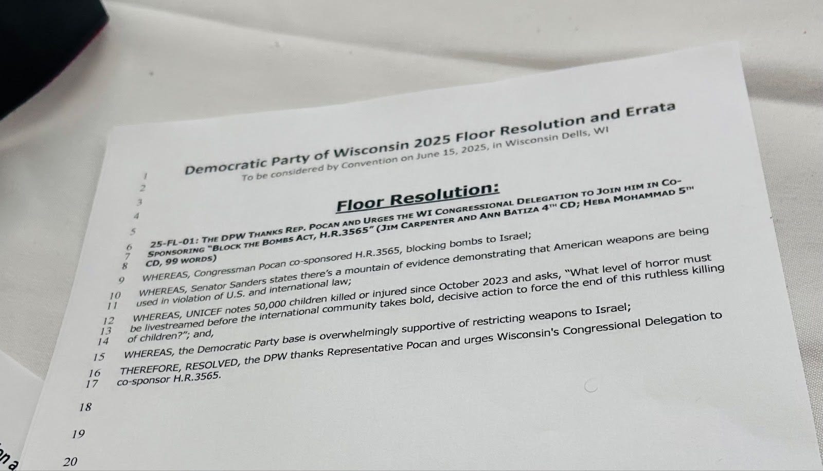 Gonna vehemently disagree with this take: “yet another indication of how divisive this issue has become within the Democratic Party. After a series of amendments failed, this resolution passed as written by a 236-30 vote.” Sure, there was some debate, but that vote (and anecdotally the number of people who came up to me after I spoke) makes it clear that Dems in Wisconsin, as with Dems across the country, do not support sending weapons to Israel that are being used in a genocide of the Palestinian people. It was not divisive.