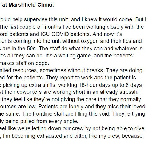 So here’s what some of the frontline workers and healthcare professionals in Wisconsin have been been saying over the last couple weeks. Let’s listen to them.