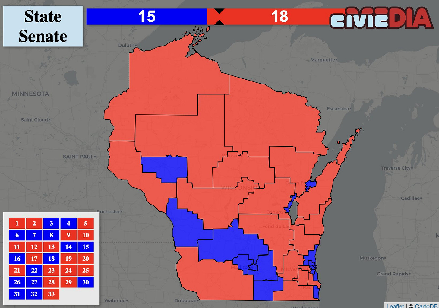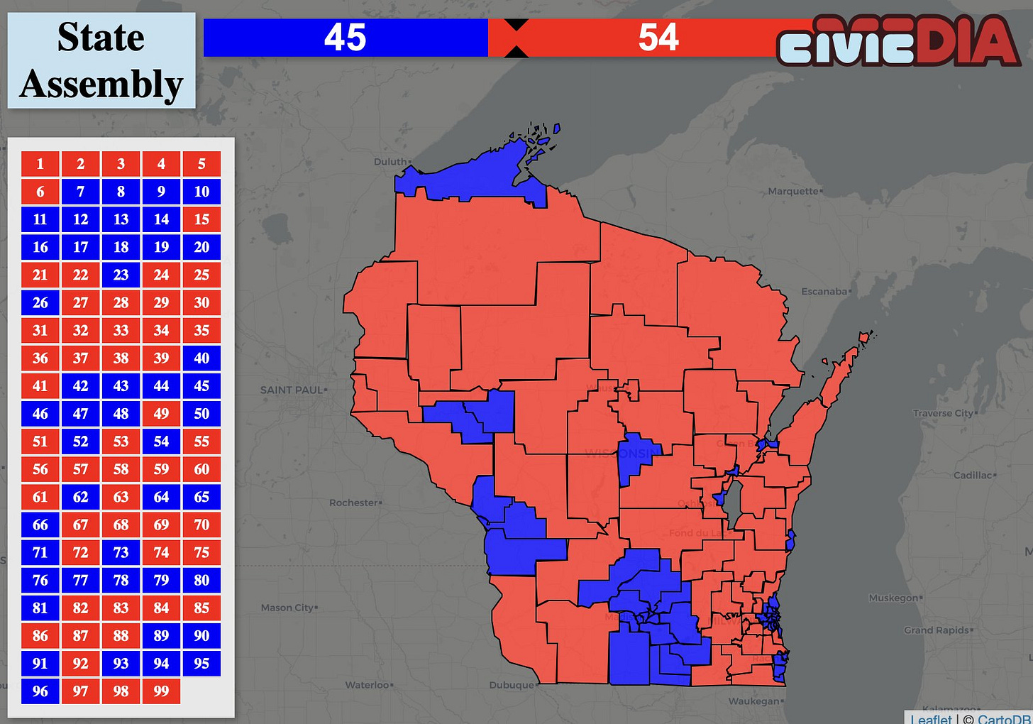 In both cases, those majorities will tighten significantly. Republicans enjoyed a 22-to-11 supermajority in the State Senate during the last legislative session, and a 64-to-35 majority in the Assembly — two seats shy of a supermajority. The new maps that Gov. Tony Evers signed into law in February led to a much more competitive landscape in the state legislature.