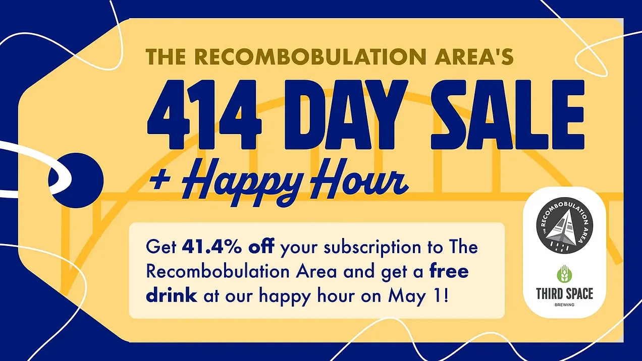 We’ll keep this short (for once): Subscribe to The Recombobulation Area today. It’s our biggest sale of the year. You can get a full-year subscription for 41.4% off — that amounts to a $50 value for just $30. That’s a $20 discount! That’s pretty good!