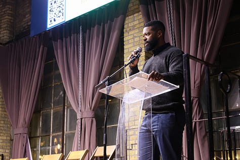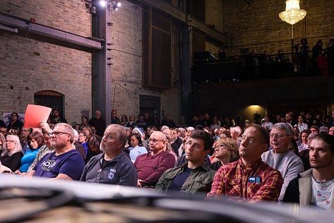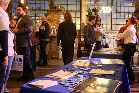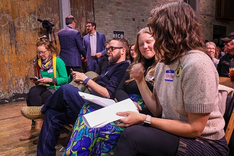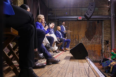 The Recombobulation Area's Dan Shafer emcee-d the event, featuring Mandela Barnes, Joel Brennan, David Crowley, Francesca Hong, Missy Hughes, Sara Rodriguez and Kelda Roys.