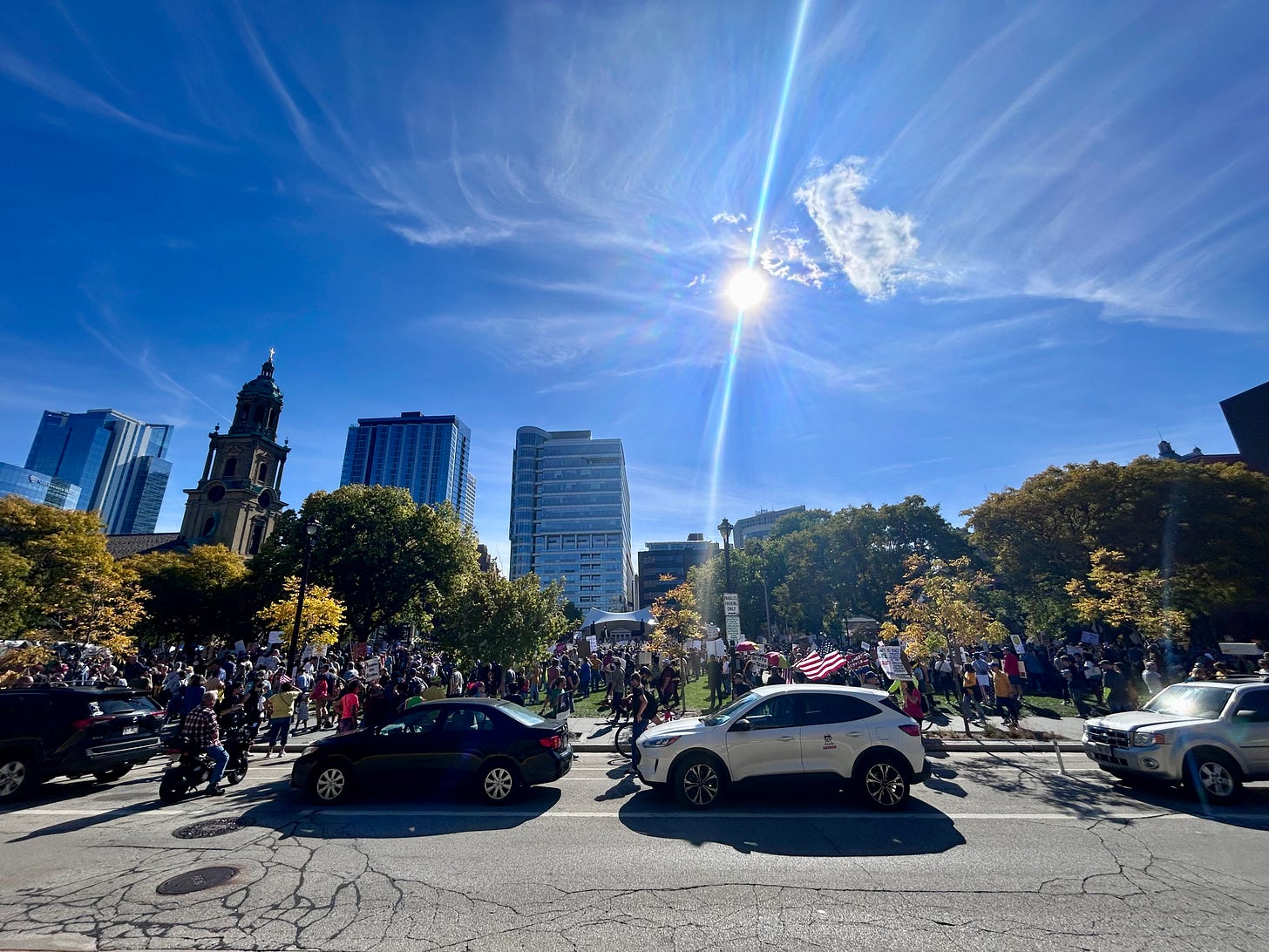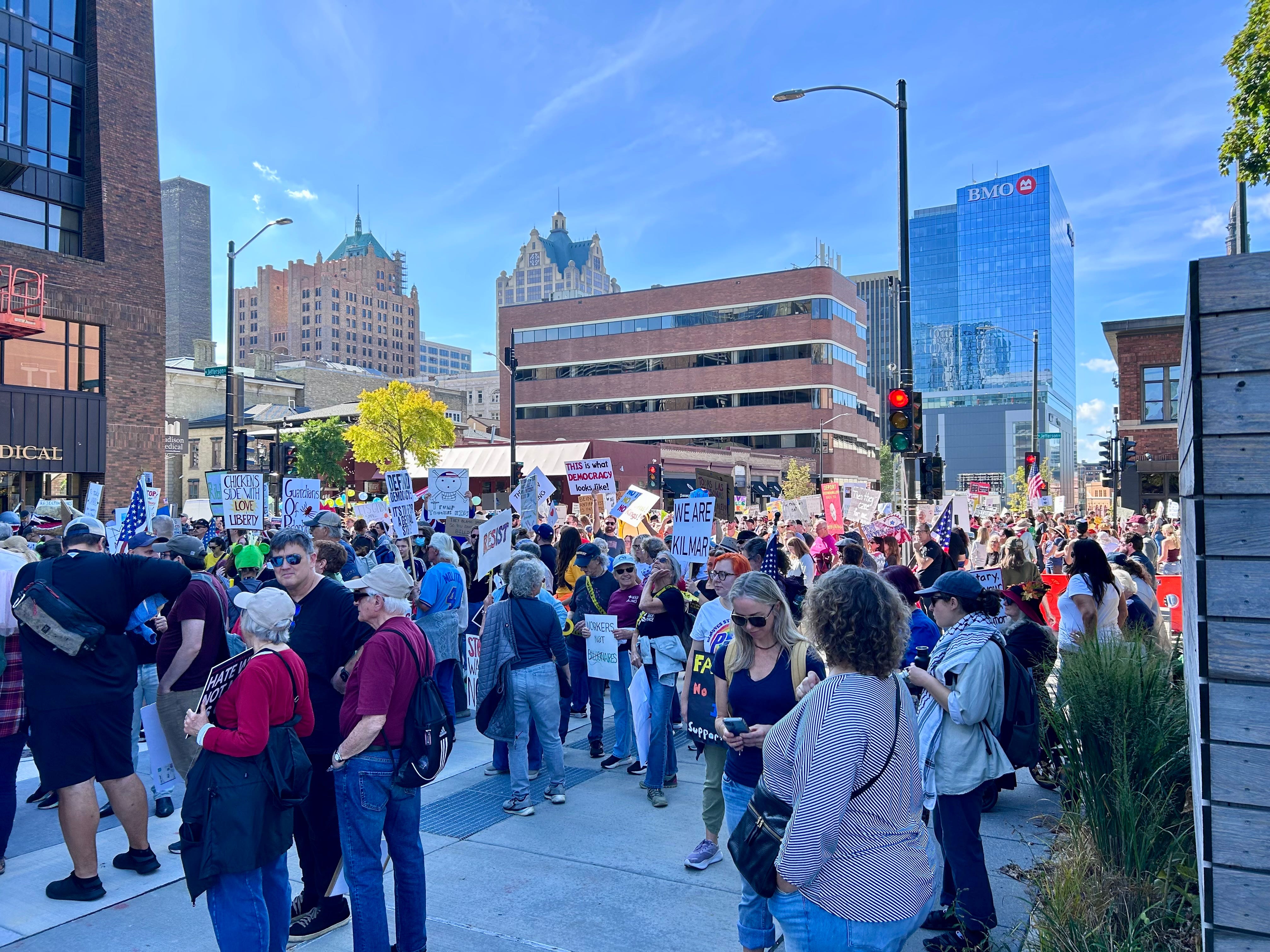 In Milwaukee, the "No Kings" protest was held at Cathedral Square Park, followed by a march through downtown. See dozens of photos from the scene.
