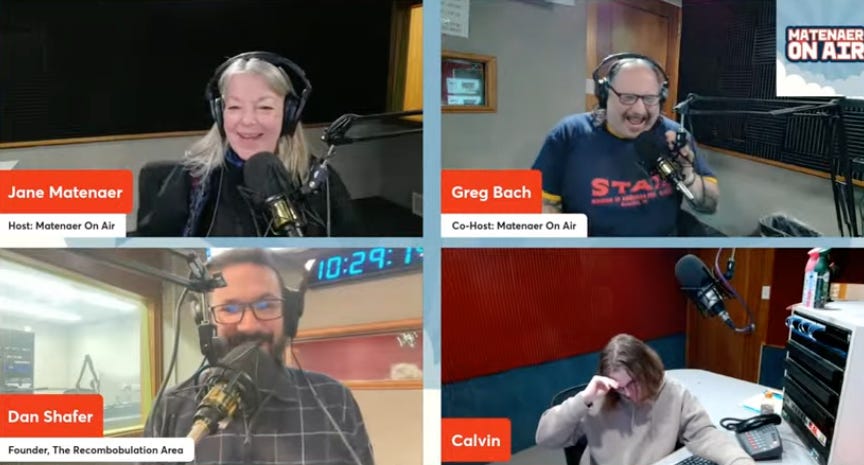But first, just a reminder about the show that I have appeared on most frequently over the years, “Matenaer On Air.” The legendary broadcaster, Jane Matenaer, is retiring at the end of next week. I sat down with her to talk about her remarkable 44+ year career in radio, and you can read the story I wrote about her and her career, and watch my sit-down conversation with her, right here: