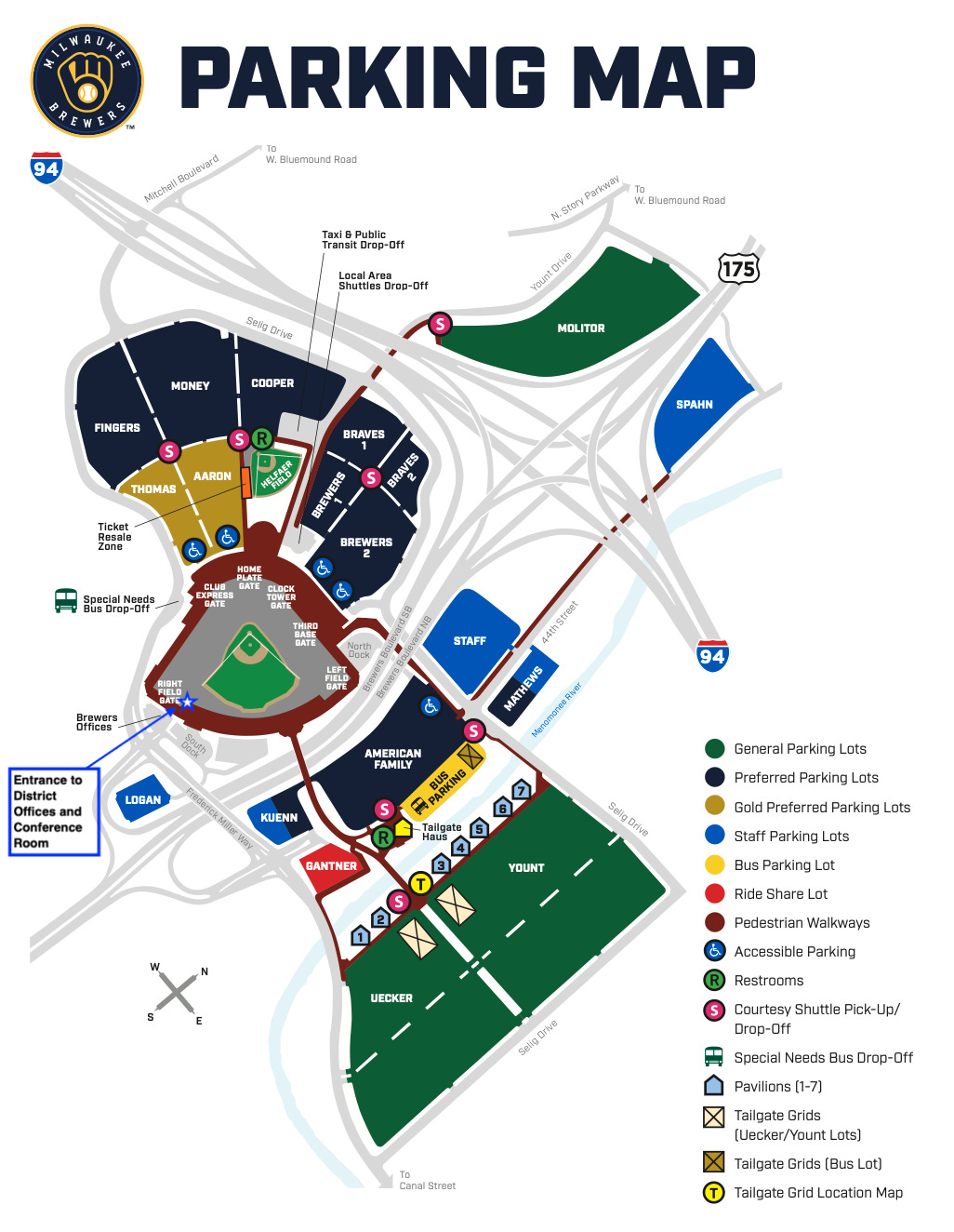 The Brewers and the district own the majority of the many parking lots around American Family Field, state and city records show, and two lots located north of I-94 are owned by the state of Wisconsin. The collection of parking lots outside the stadium includes more total parking spaces than that of Disney World’s Magic Kingdom in Orlando, Florida, which ranks as one of the largest parking lots in the world.