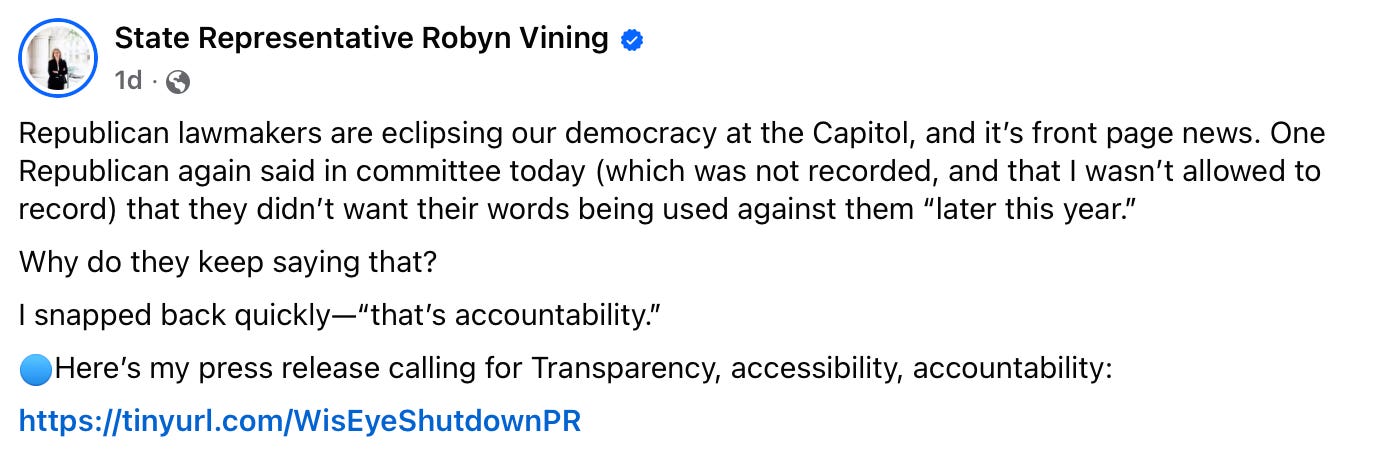 Strong piece on how removing Wisconsin Eye created a vacuum that leadership immediately filled with opacity. The Rep saying they dont want words used against them later this year is basically admitting the quiet part out loud, accountability is the threat not documentation. Had a similar dynamic in local govt where removing livestreams didnt reduce controversey it just made it harderfor residents to verify what actually happend.