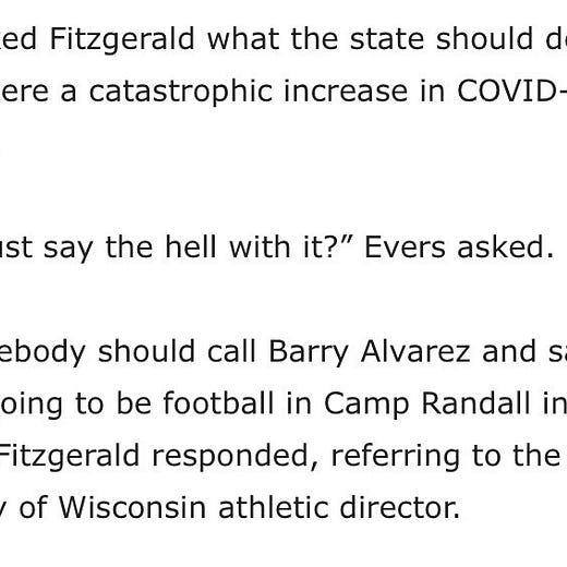 So, Fitzgerald’s time in the Wisconsin State Legislature will soon come to an end. There’s an interesting retrospective to eventually be written about Scott Fitzgerald and his time leading the Wisconsin State Senate. He hasn’t been the most singularly polarizing voice, but he’s been right there with Vos and with former governor Scott Walker every step of the way as they’ve advanced damaging policies for Wisconsin. This year, he’s played a memorably key role in the lack of statewide response to the coronavirus outbreak, prioritizing Badger football above all as cases, hospitalizations and deaths skyrocket in the state (and the Badgers play one game before shutting down over an outbreak within their ranks).